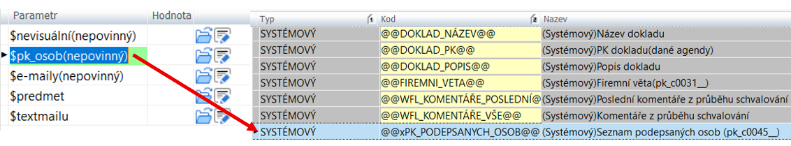 2. příklad - při použití této funkce se doplní pk_osob, které podepsali výzvy v rámci schvalovacího procesu a odešli jim mail s předmětem a textem, který je definován v dalších parametrech.