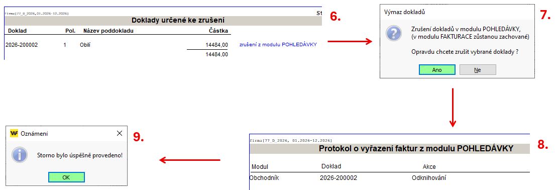 - Budete informováni o úspěšném smazání dokladu z účetnictví (9.)