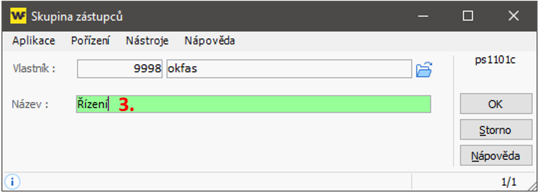 Nyní se Vám otevře okno pro vytvoření skupiny. Do pole Název napište název nové skupiny (3.) a potvrďte tlačítkem OK.