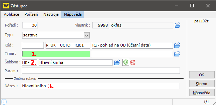 - Šablonu IQ sestavy - pokud oblíbená ikona volá IQ sestavu, je možné nastavit šablonu, se kterou má tato sestava použít. Lze vybrat jak ikonu lokální tak i sdílenou (pokud máte sdílené šablony nastaveny).