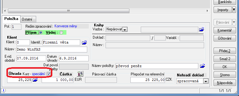 - Ve WinFASu musí mít každá měna založenu svoji bankovní knihu, i když se jedná o jeden bankovní účet.