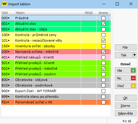 - 5. Následně vyberete šablony pro import do programu. Výběr potvrďte tlačítkem "OK".