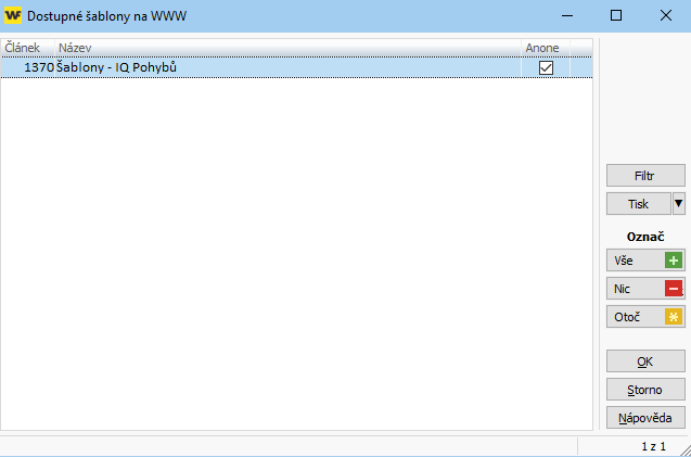 - 4. Poté je třeba zatrhnout z dostupných šablon požadovanou skupinu a kliknout na tlačítko "OK".
