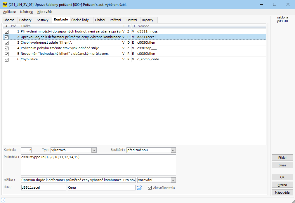 nebo pravého tlačítka myši u příslušné šablony otevřete okno požadované šablony, kde klepnete na tlačítko "Uprav" a provedete potřebná nastavení dle návodu níže:
