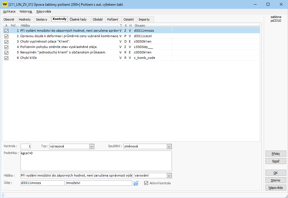 Kontrola pro zamezení výdejů do záporných hodnot množství