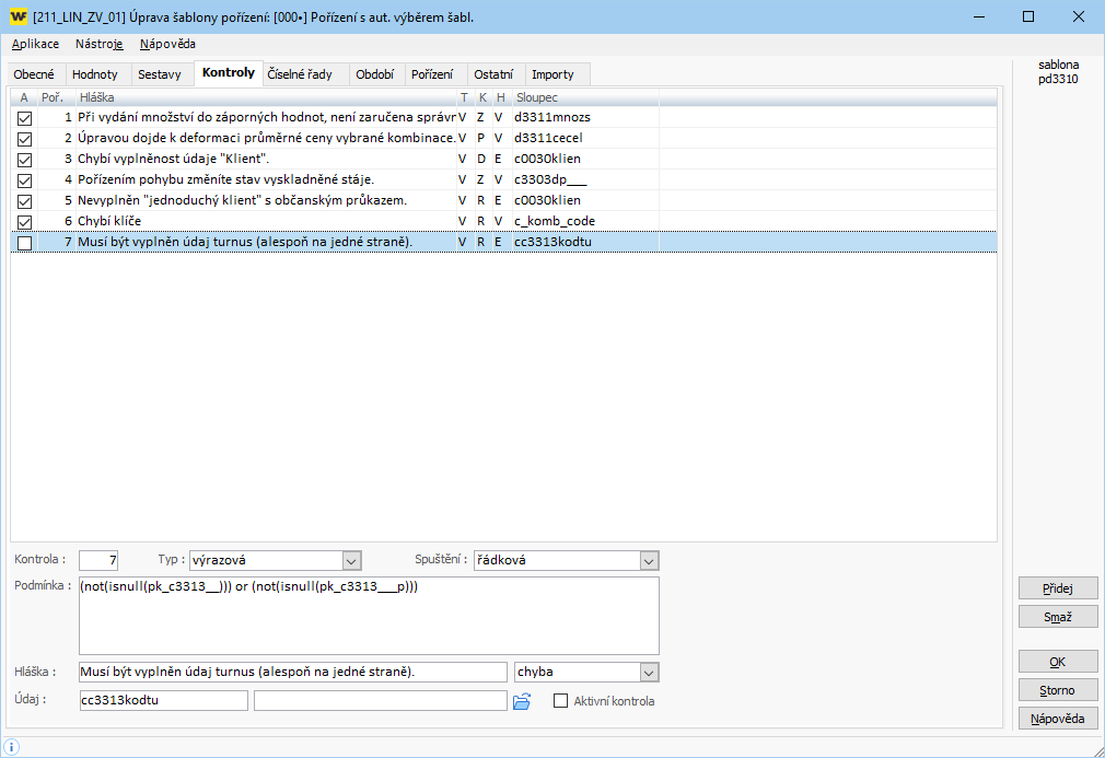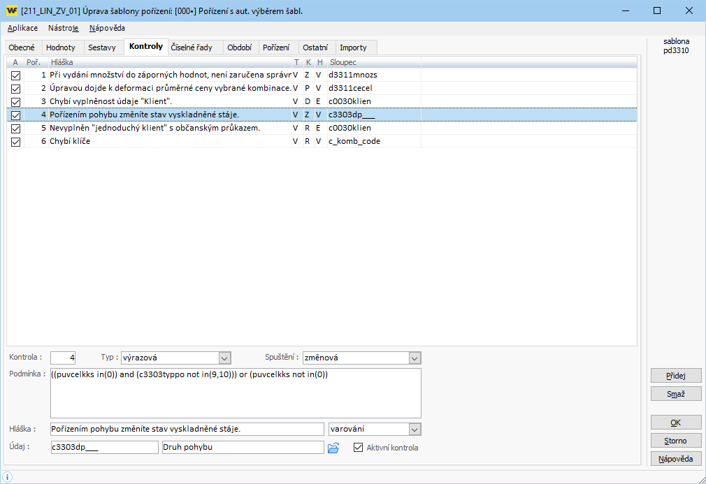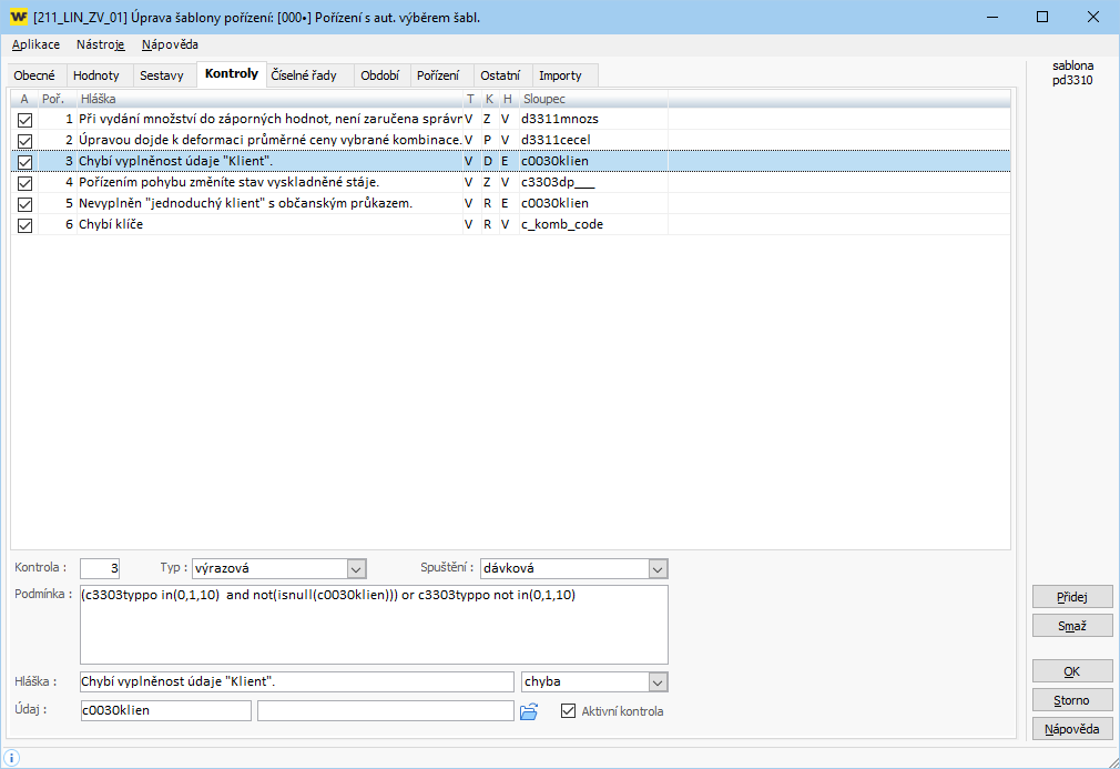 - Podmínka: (c3303typpo in(0,1,10) and not(isnull(c0030klien))) or c3303typpo not in(0,1,10)