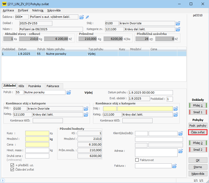 - Hláška: Pořízením pohybu změníte stav vyskladněné stáje.