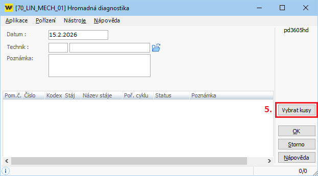 - 5. Zadejte Datum, případně Technika a klikněte na tl. Vybrat kusy.