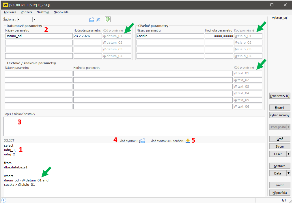IQ SQL - zakázkové sestavy ze scriptu