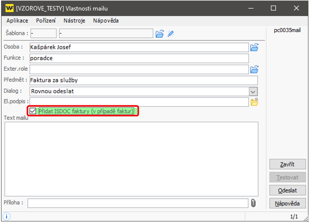 - Nezapomeňte zatrhnout "Přidat ISDOC faktury"