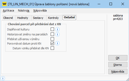 - Umožňuje zapnout / vypnout kontrolu datumů u podílů i parcel.
