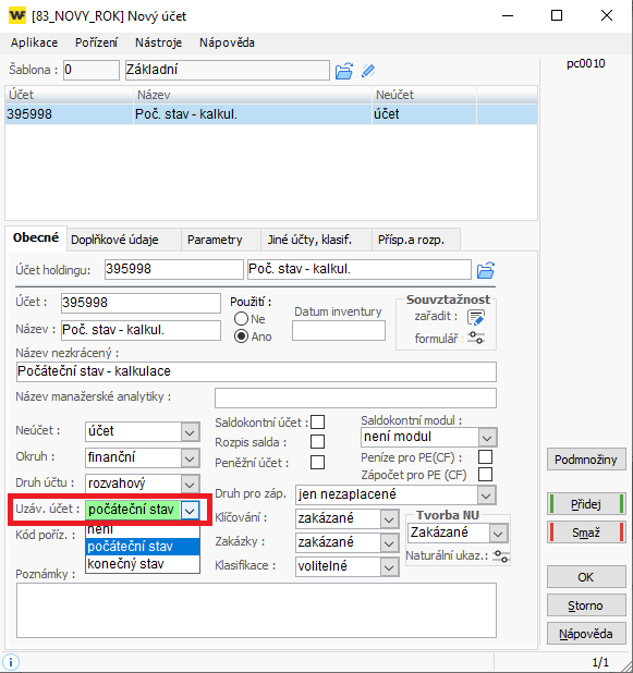 - Uzáv. účet. : počáteční stav / není