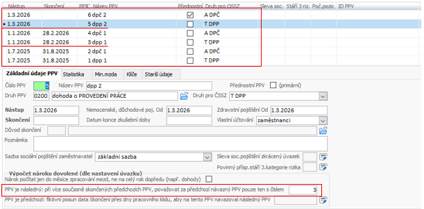 Pokud máte u zaměstnance souběžné PPV, na které následně navazují další souběžné PPV (např. DPP a DPČ).