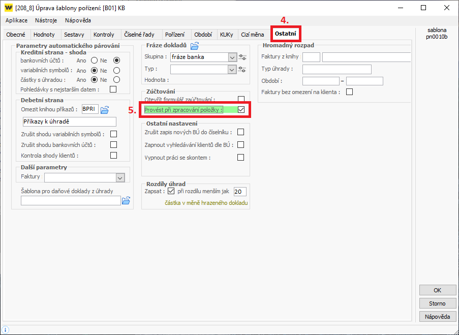 - Zaškrtněte políčko "Provést při zpracování položky" (5.).