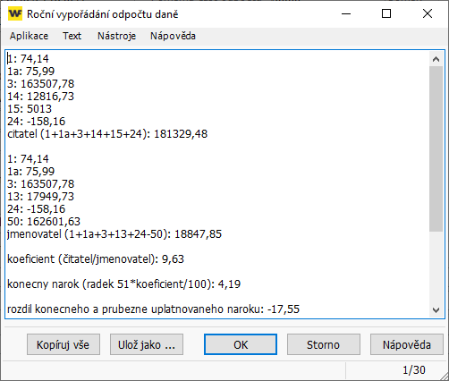 - V posledním měsíci kalendářního / hospodářského roku program provede výpočet ročního koeficientu krácení daně