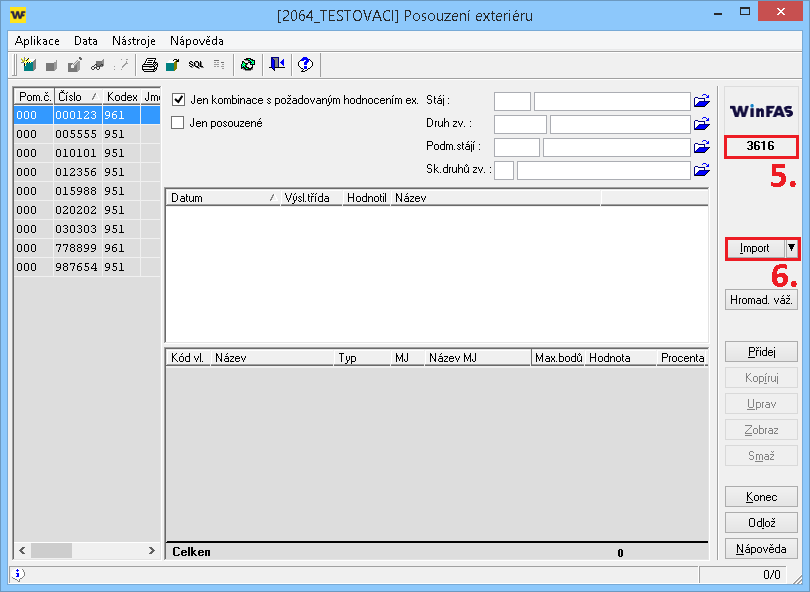Aplikace Posouzen exteriéru *3616 umožňuje importovat data ze souboru vytvořeného ve webové aplikaci webKUMP.