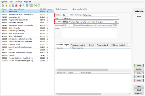 - Ručním způsobem, tj. upravíte údaj Pozice, aby odpovídal CZ-ISCO