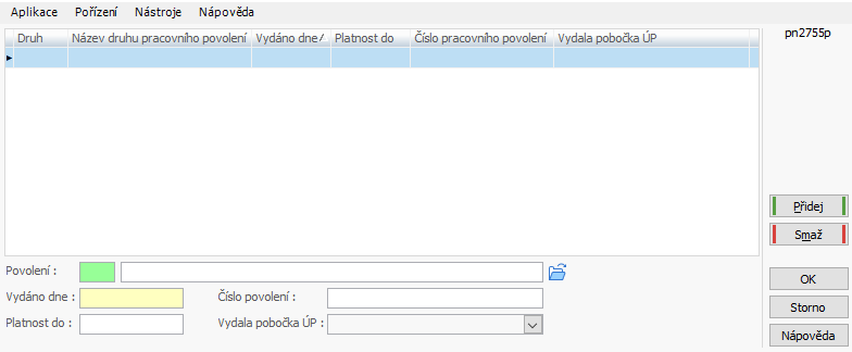 - tl. Pracovní povolení, doplňte údaje týkající se povolení