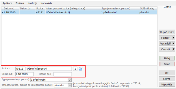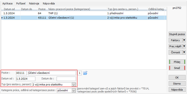 - Vlastní označení pracovní pozice odpovídá více pozicím dle CZ-ISCO (např. THP), pokud i nadále chcete takto evidovat, nutné nastavení v apl. *7011 – tl. Pozice