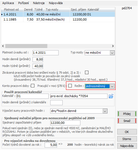 - vybrat pracovní režim zaměstnance