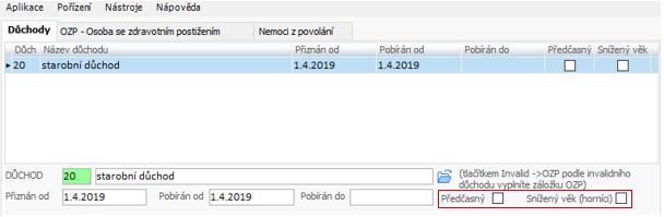 - tl. Důchody - záložka OZP