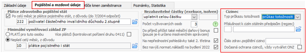 - Záložka Pojištění a mzdové údaje