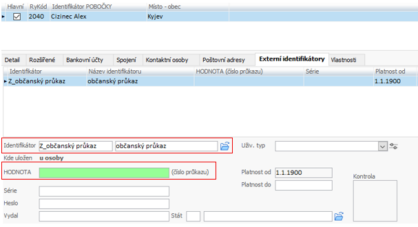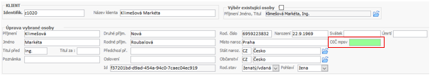 - tl. Klient - záložka Externí identifikátory