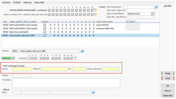 - tato osoba bude zadána dalším řádkem a to s kódem 0531