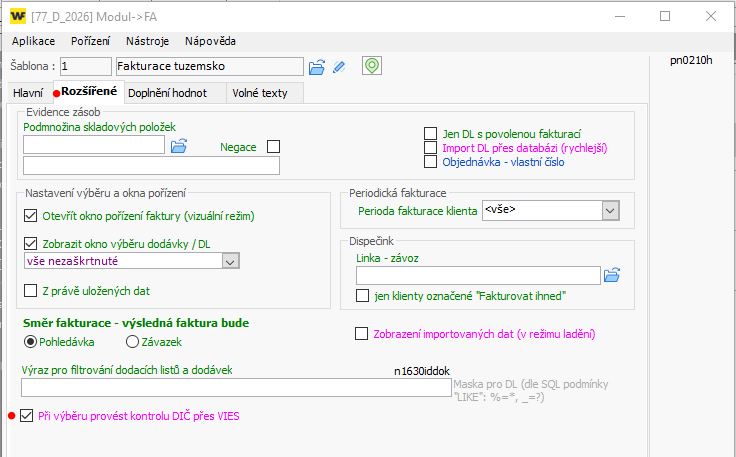 Nastavení ověřování v Modul-FA má význam, pokud dodatečně fakturujete ze zásob a chcete znát informaci o platnosti DIČ již v okně Výběr dodávek pro zahlavičkování.