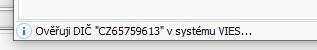 V moment, kdy WinFAS komunikuje s rejstříkem přes službu VIES API je tato informace sdělena na spodní liště pořízení faktur: