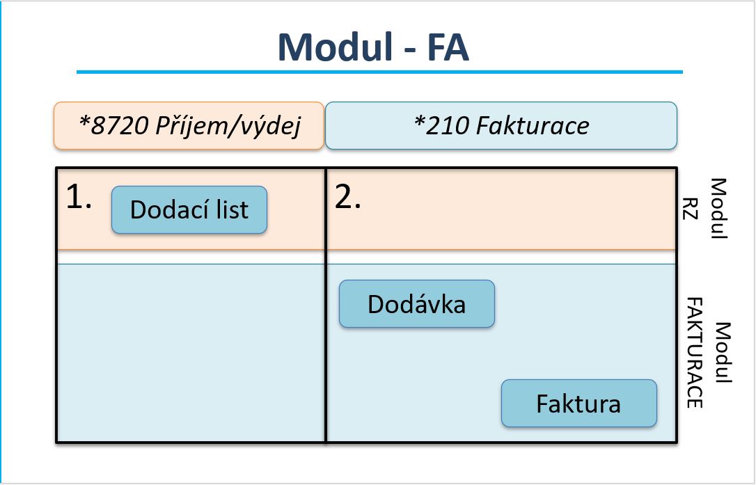 - Později pak při fakturaci přes funkci Modul-FA vybíráte jako zdroj pro fakturu "dodávky" a pouze vzniká faktura (v ten moment již DL i dodávky existují)