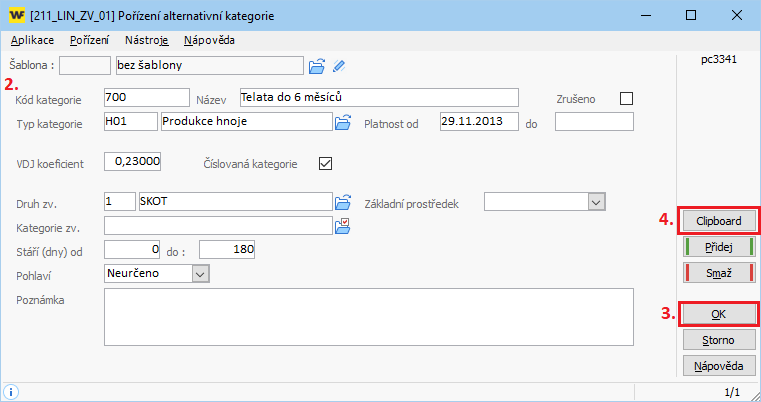 - 4. Clipboard - pomocí tlačítka Clipboard je možné kategorie zvířat naimportovat, viz. návod +3727.
