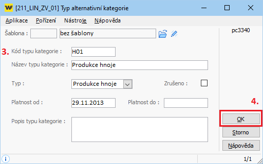 - Typ: Program automaticky vyberete uložený typ kategorie, na kterém stojíte kurzorem. Pomocí ikony knížky je možné vybrat jiný Typ.