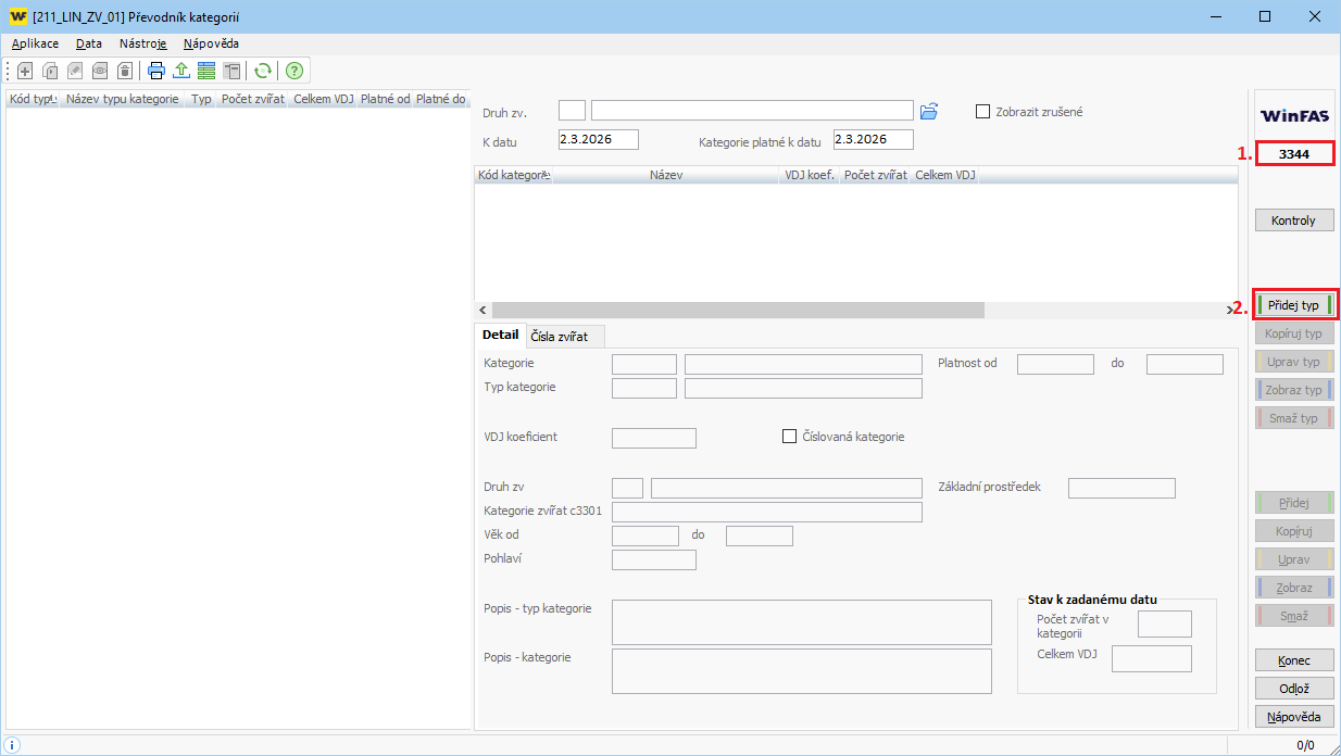 Pozn.: Pokud není zatržena volba Číslovaná kategorie, pak nápočet VDJ počítá pouze s počty zvířat ve vybraných kategoriích, na další parametry nebude brán zřetel.
