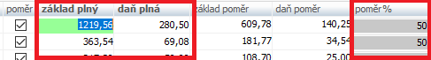 - Vyplňte zde výši poměru u každého dokladu.