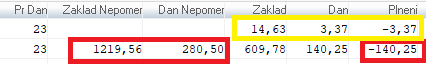 - Jedná se o sloupec Základ Nepoměr / Daň Nepoměr.